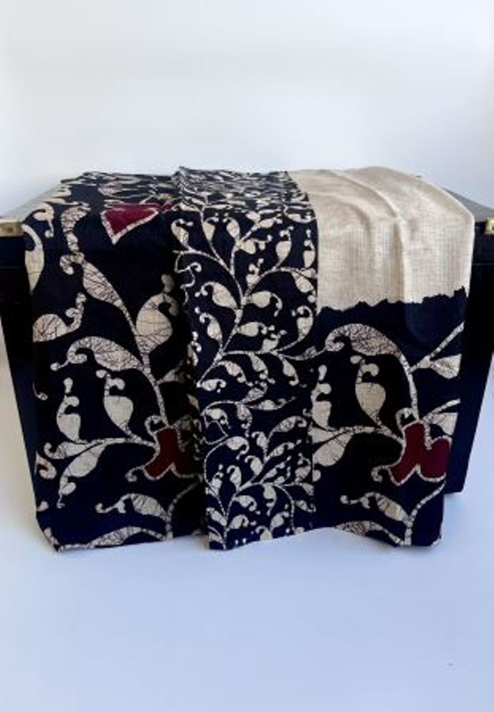 This black cotton silk blend saree is a timeless and versatile choice for any occasion. The rich black hue exudes sophistication and elegance, while the cotton silk blend fabric offers a luxurious drape and comfortable feel. Paired with an unstitched blouse, it allows for personalized styling, making it suitable for a variety of occasions.