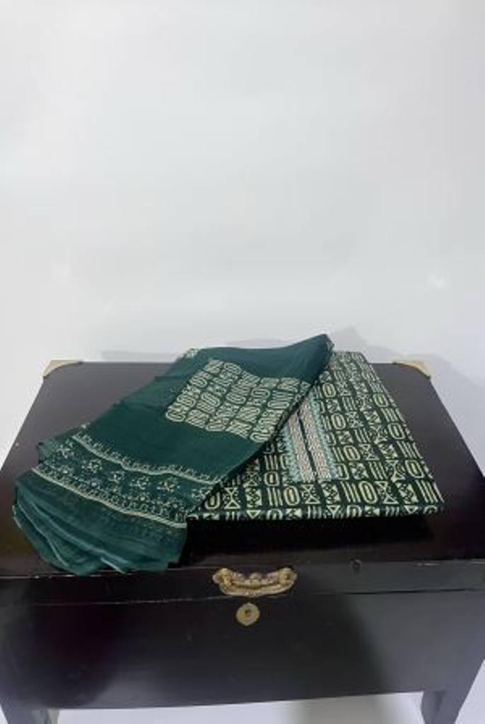 Dark Green color cotton unstitched suit set (3 piece)
