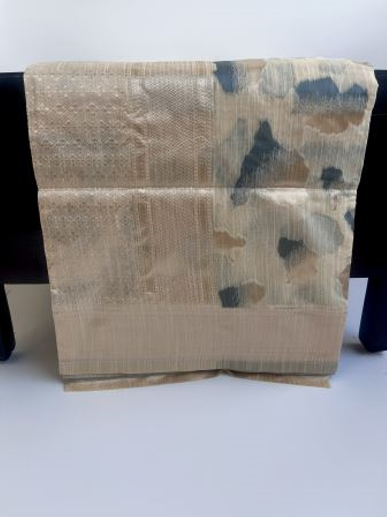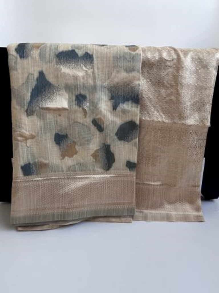 Grey and beige color linen blend cotton saree with unstitched blouse