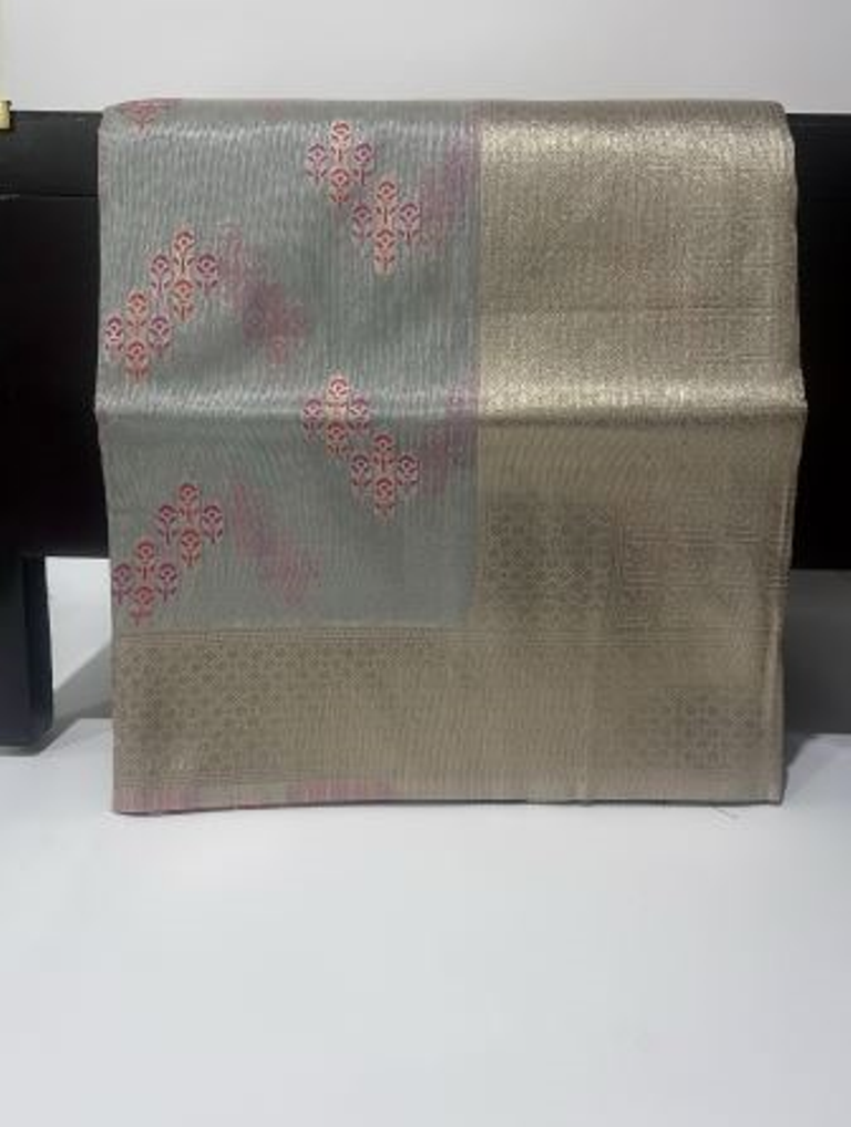 This grey shimmer organza saree is a captivating blend of sophistication and allure. The understated grey hue exudes elegance and versatility, while the shimmering organza fabric adds a touch of glamour and sophistication. Paired with an unstitched blouse, it allows for personalized styling, making it a versatile option for various events.