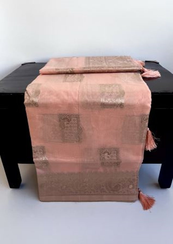 In a light apricot hue, this tissue blend cotton saree emanates a gentle radiance, emanates a gentle radiance , reminiscent of dawns first light. The delicate fabric drapes gracefully, enveloping the wearer in an aura understated elegance. Its subtle color exudes warmth and sophistication. Accompanied by an unstitched blouse , this ensemble offers versatility and personalized styling.