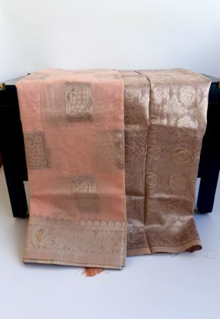 Jalpari light apricot color tissue blend cotton saree with unstitched blouse