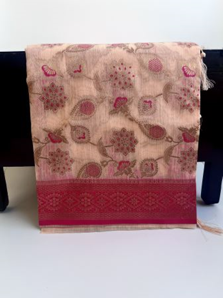 Light peach color cotton slub saree with unstitched blouse