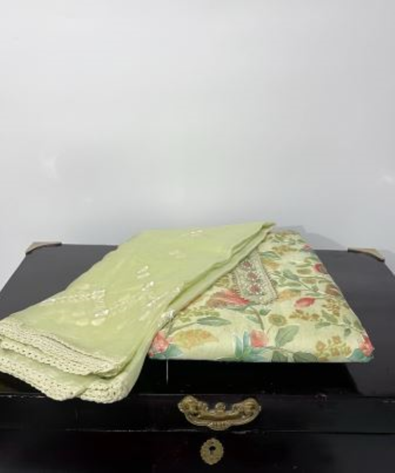 Mint Colour embroiderod organsa unstitched suit set (3 piece)
