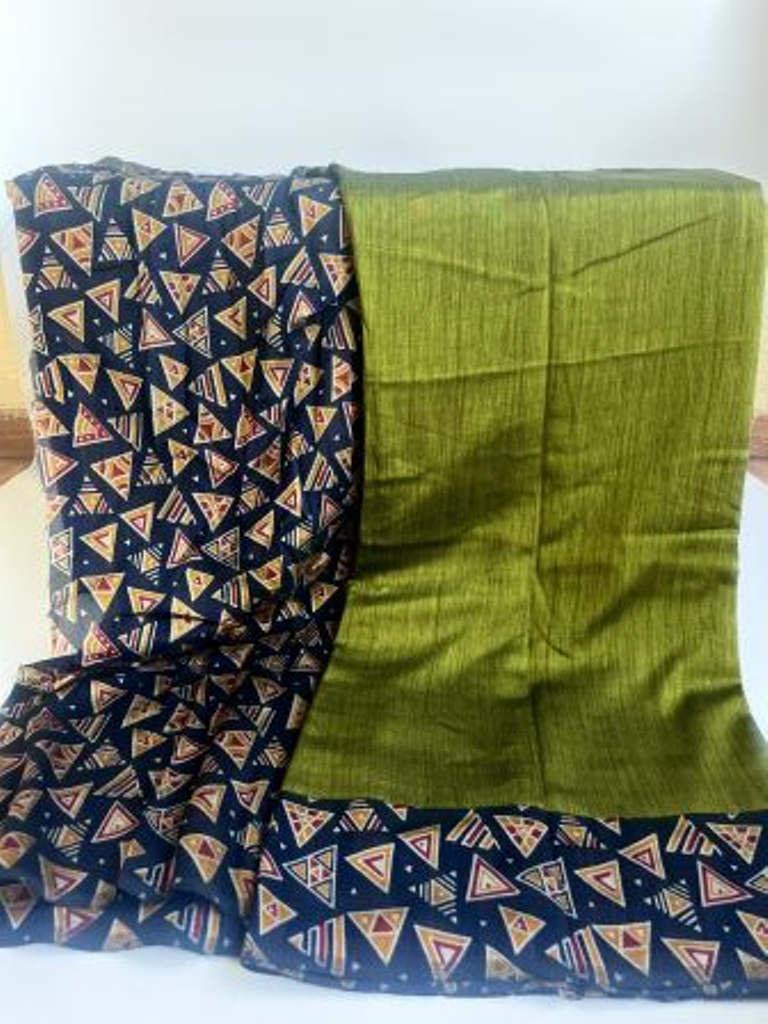 Moss green color pure vichitra silk with unstitched blouse