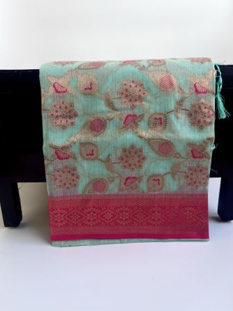 Naveda sky color cotton slub saree with unstitched blouse