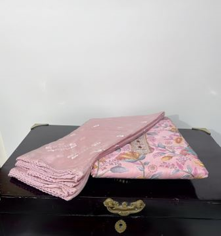 Onion Pink Colour embroidered organsa unstitched suit set (3 piece)