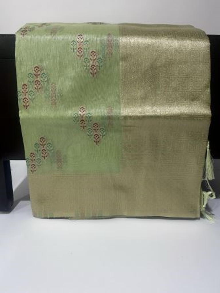 Pastel green color shimmer organza saree and unstitched blouse