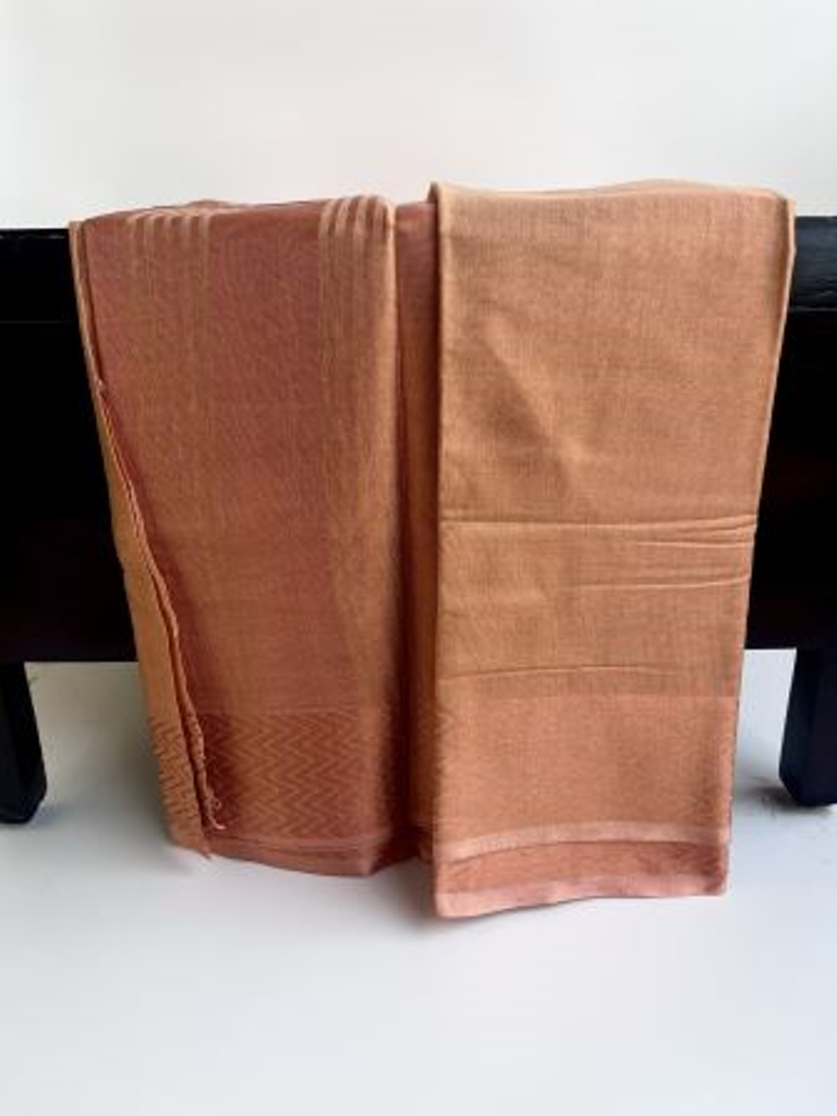 Peach color tissue cotton saree with unstitched blouse