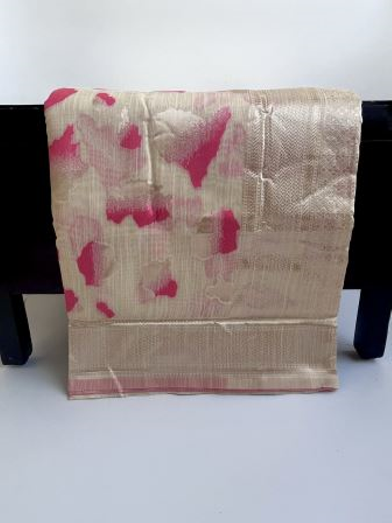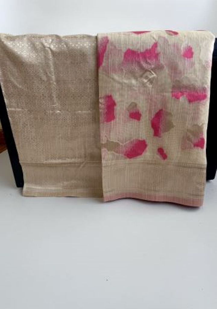 Pink and beige color linen blend cotton saree with unstitched blouse