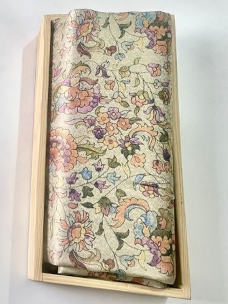 Delight in elegance with this powder green soft silk saree adorned with a sharning floral print the serene powder green hue adds a touch of freshness, while the floral print infuses it with a hint of natural beauty paired with an unstitched blouse. This ensemble offers versatality for personalised styling.